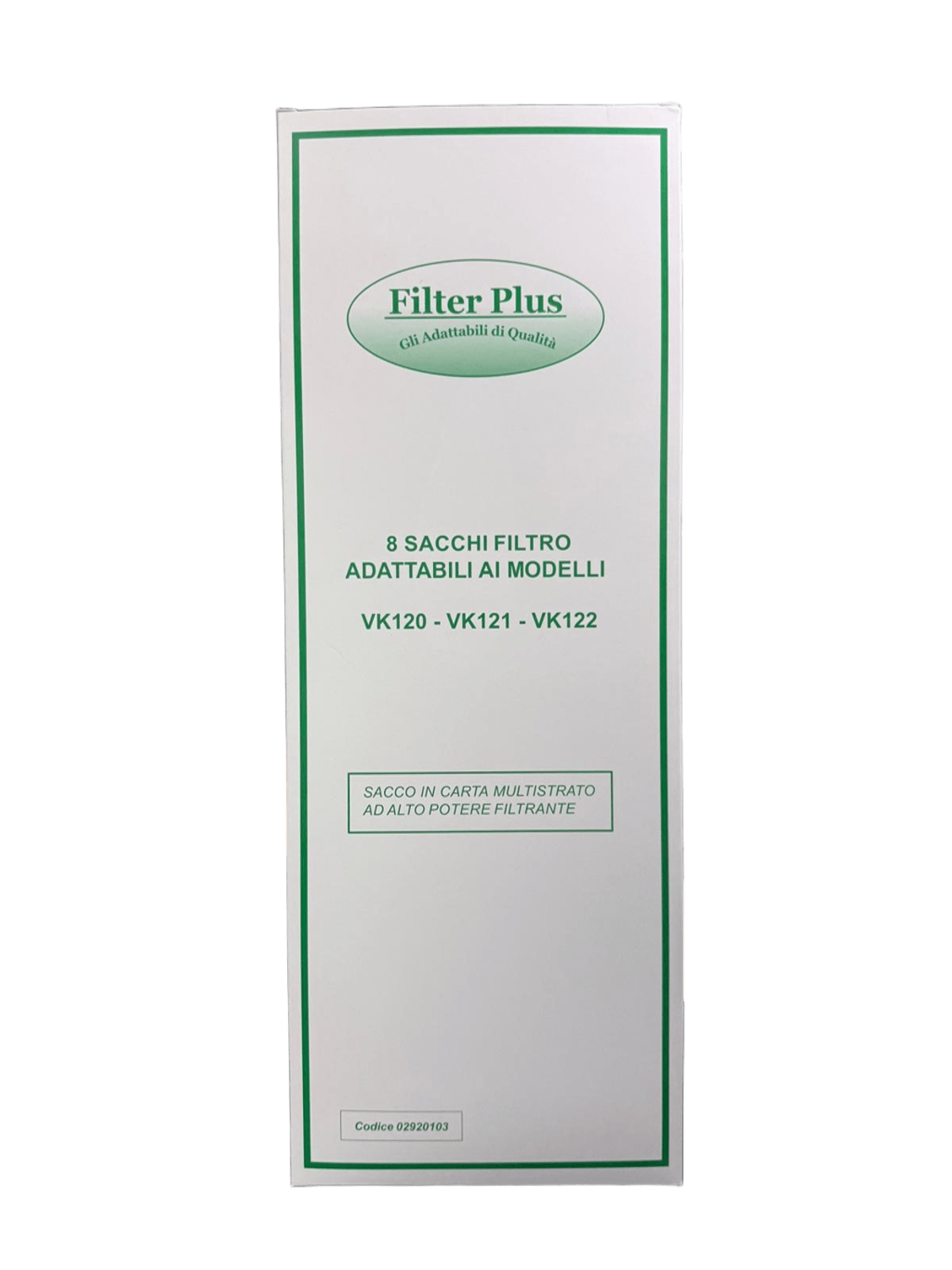 Confezione da 8 sacchetti in carta naturale ad alto potere filtrante, di qualità certificata compatibili per il folletto 120-21-22