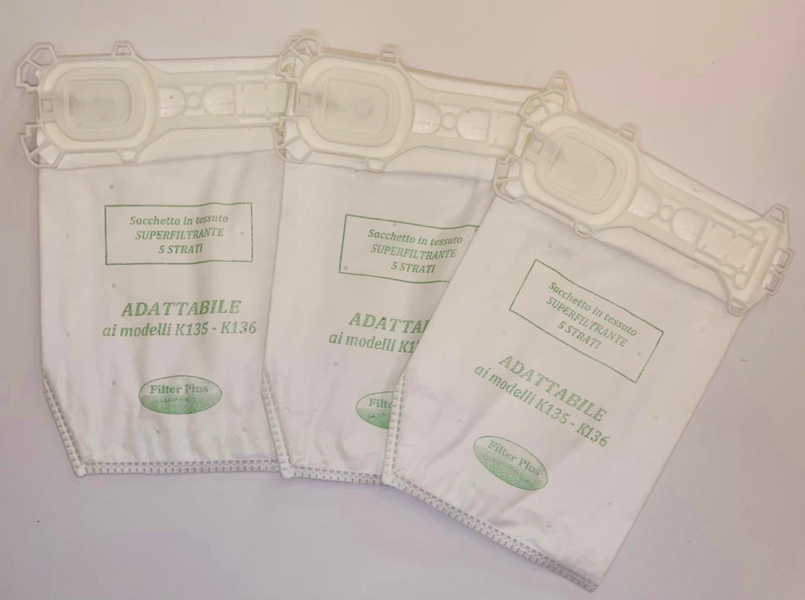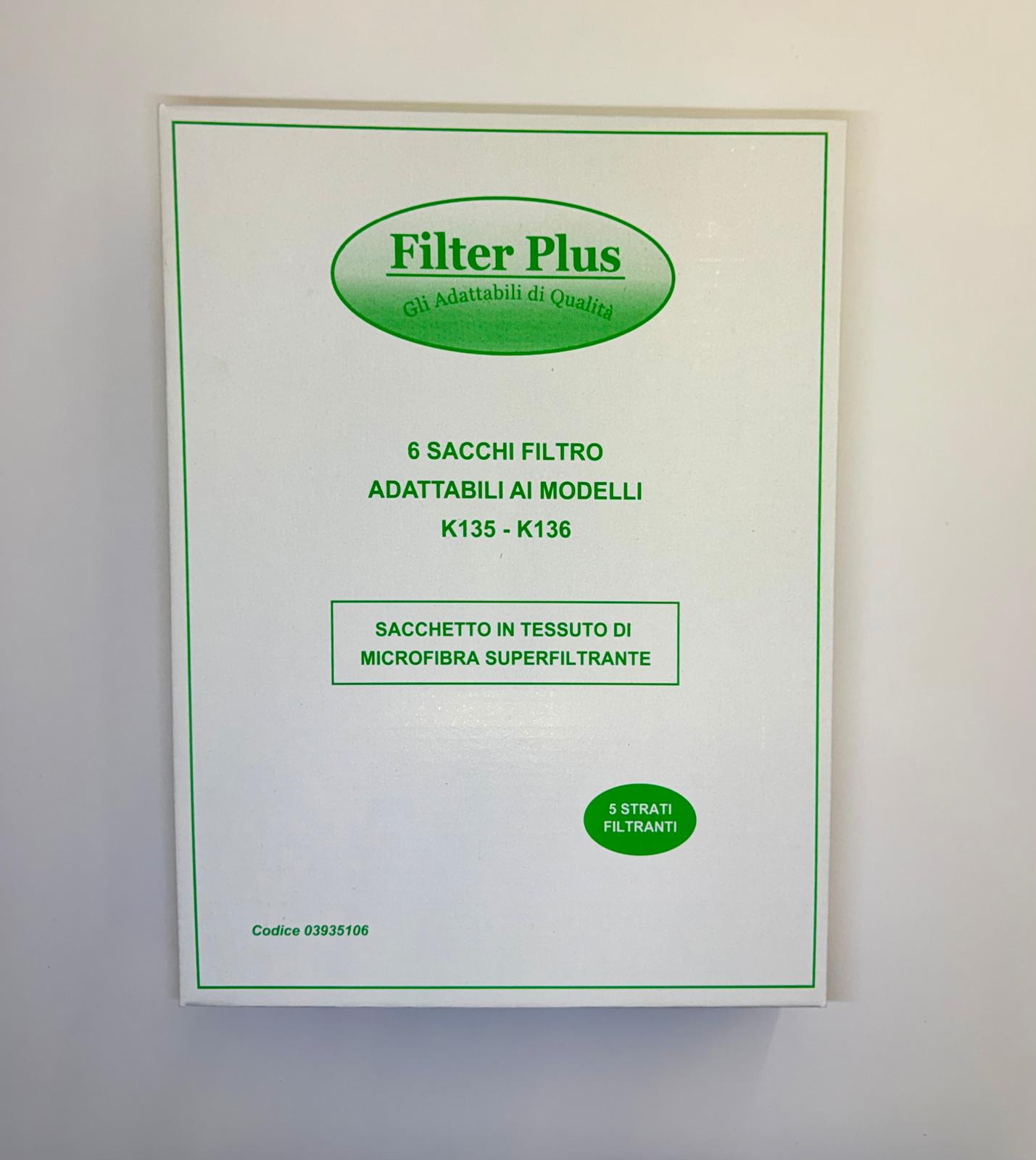 Confezione da 6 sacchetti filtro in microfibra a 5 strati filtranti, di qualità certificata compatibili per il folletto VK 135 e 136